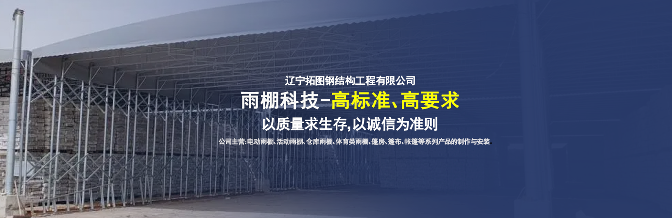 遼寧拓圖鋼結構工程有限公司是一家專業從事推拉篷設計、制作、安裝、使用、維修的綜合性公司。公司主營:電動雨棚、活動雨棚、倉庫雨棚、體育類雨棚、篷房、篷布、帳篷等系列產品的制作與安裝。 遼寧拓圖鋼結構工程有限公司堅持以市場為導向,以科技創新為動力,以質量求生存,以誠信為準則,倡導求實、進取、創新的企業精神?!翱茖W的管理、嚴謹的設計、 的制作安裝、嚴格的質量檢測、良好的后期服務成就企業的信譽,為您提供優質服務。 遼寧拓圖鋼結構工程有限公司傾力于開發應用三維空間結構與新材料的結合,將廣告藝術視覺表現形式與張力膜材科學的結合,推出多彩推拉蓬,依靠先進的科學技術,將推拉蓬建筑表現形式無限延伸,立志走在建筑科學的前沿,引導建筑時尚潮流,我們的目標是使推拉蓬建筑在中國發展壯大。 遼寧拓圖鋼結構工程有限公司憑著極強的事業熱情和豐富的專業經驗以“勤勉進取、銳意創新、至誠至信”的精神使公司得到迅速健康發展,業務范圍遍及全國??茖W的管理、嚴謹的設計、高標準的制作安裝流程,嚴格把控產品質量,熱誠的售后服務是企業競爭力的源泉?! ?nbsp; 遼寧拓圖鋼結構工程有限公司人愿以最誠摯的態度,歡迎廣大客戶的蒞臨與溝通!愿為市場提供優...